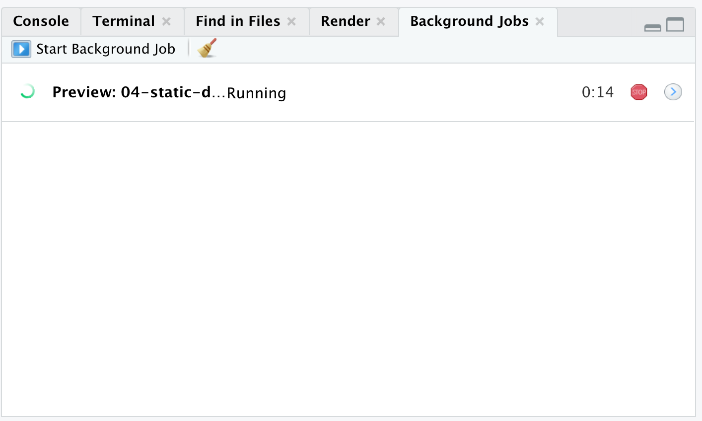 Executing the Quarto Render button in RStudio will call Quarto render in a background job - this will prevent Quarto rendering from cluttering up the R console, and gives you and easy way to stop.