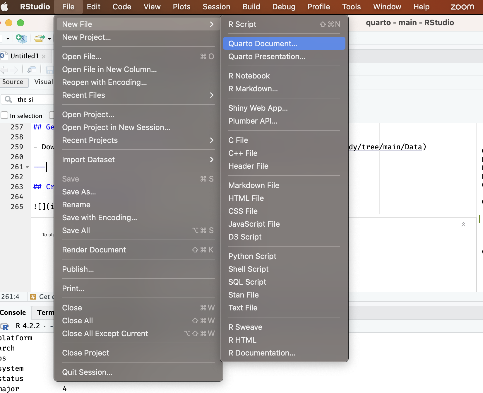 Quarto uses markdown as its underlying document syntax. Markdown is a plain text format that is designed to be easy to write, and, even more importantly, easy to read